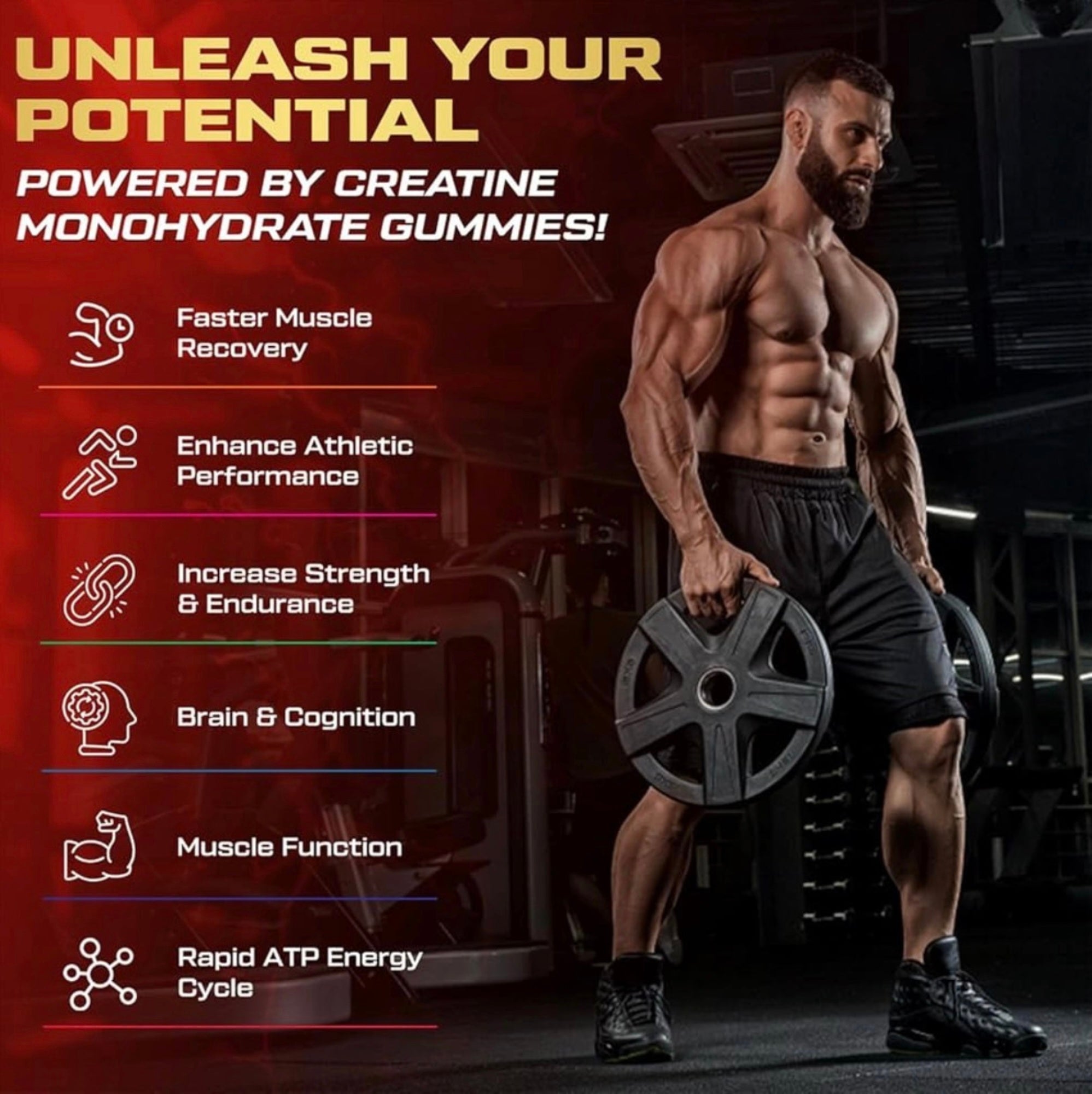 - Fórmula para o máximo desempenho: Crie o seu melhor treino até agora. Experimente o poder das nossas gomas de creatina para homens e mulheres, com suporte confiável para energia, resistência e desempenho geral. Essas gomas pré-treino ajudam você a levantar mais peso, pronto para se tornar uma fera na academia. As gomas perfeitas para antes e depois do treino, para abastecer sua mente e corpo a qualquer hora.